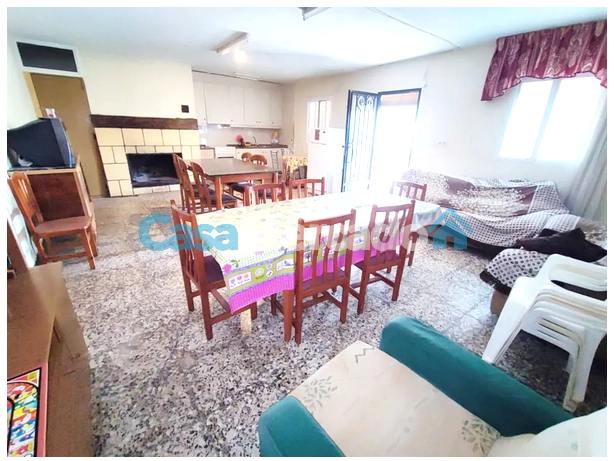 The house itself has a floor area of 140 sqm and is spread over one level. At the entrance, you'll find a spacious veranda. The house has two bedrooms, with the possibility of expanding to three or four. There is also a bathroom and a cozy living/dining room with an open-plan kitchen. The house features a fireplace and terrazzo floors, creating a warm and inviting atmosphere.