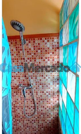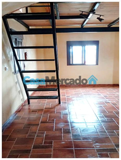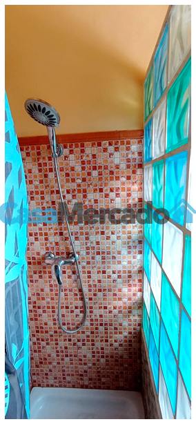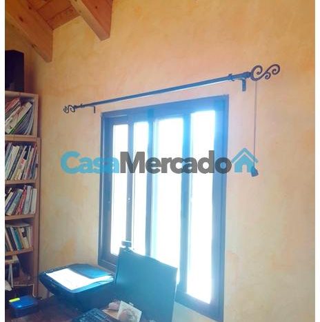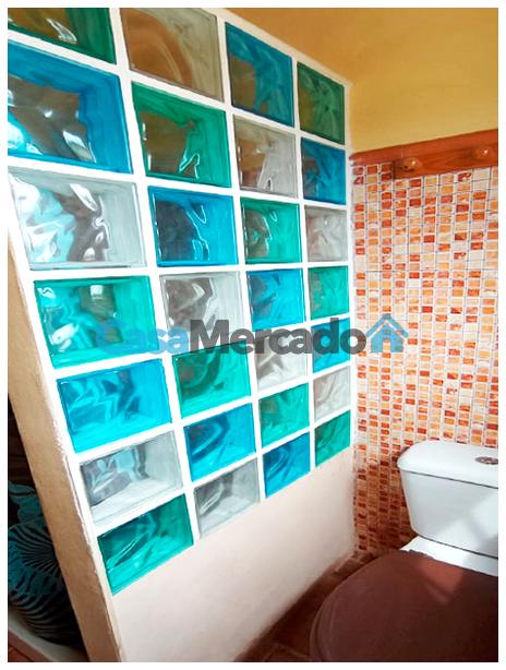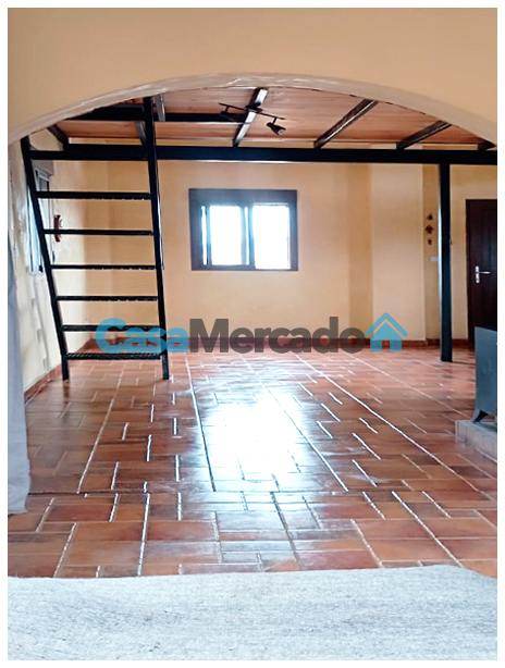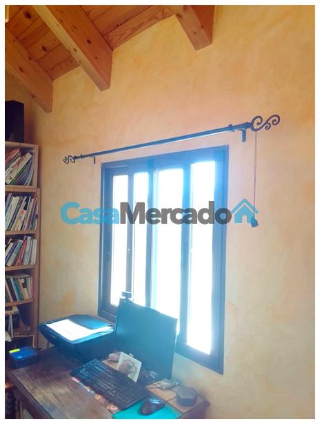 Distribución: invernadero, sala de estar con techos altos, cocina abierta y lavadero, baño con escalera de hierro al primer piso.
