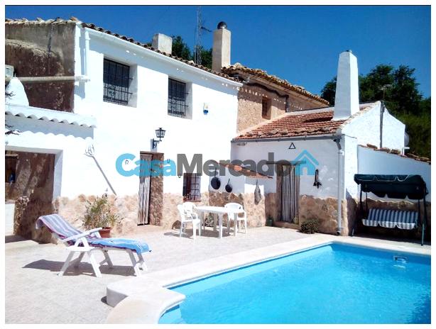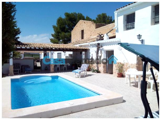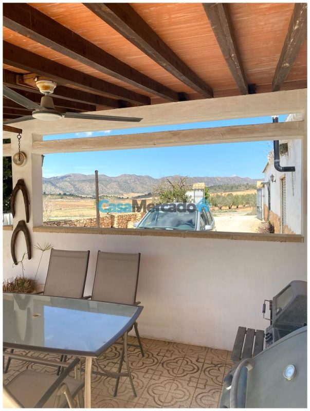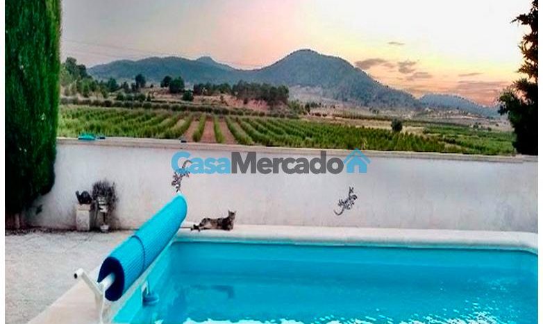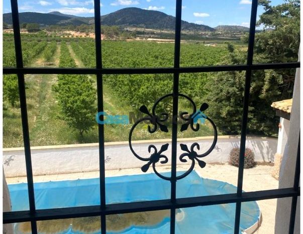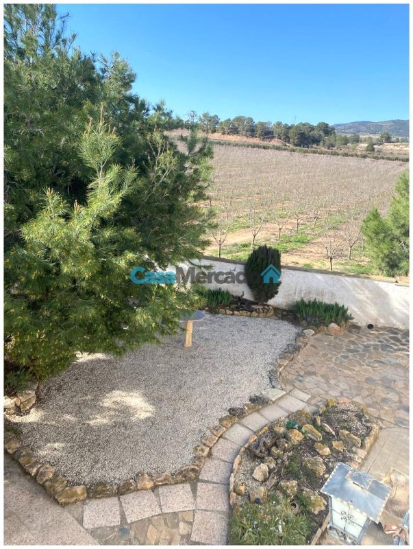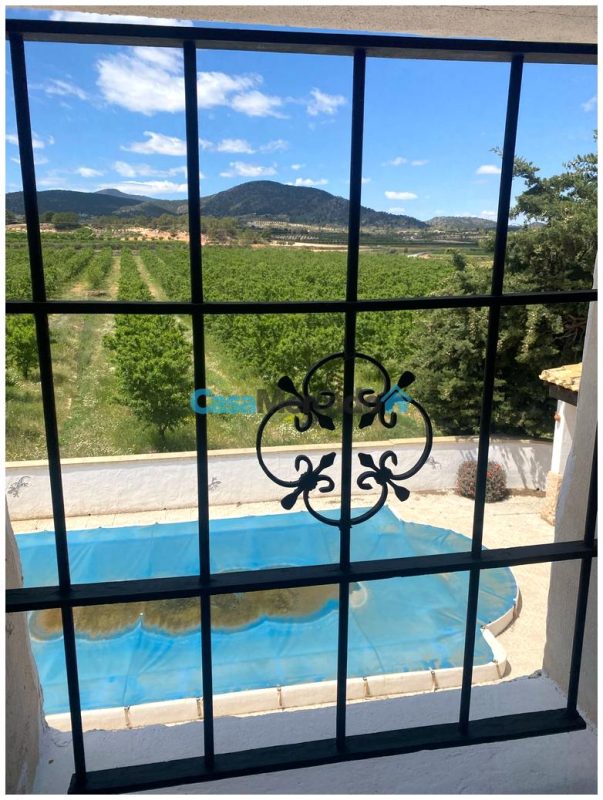 La superficie total de la parcela es 887 m². Aquí hay uno piscina privada climatizada Con vistas panorámicas al valle circundante, viñedos, olivares y almendros. Una ubicación tranquila y privada, ideal para una residencia familiar permanente o para un negocio. Alojamiento y desayuno, en parte gracias a los permisos turísticos flexibles en Yecla.