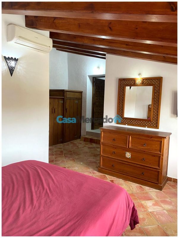 HoDormitorio principal con aire acondicionado, baño privado, armarios empotrados y vestidor.